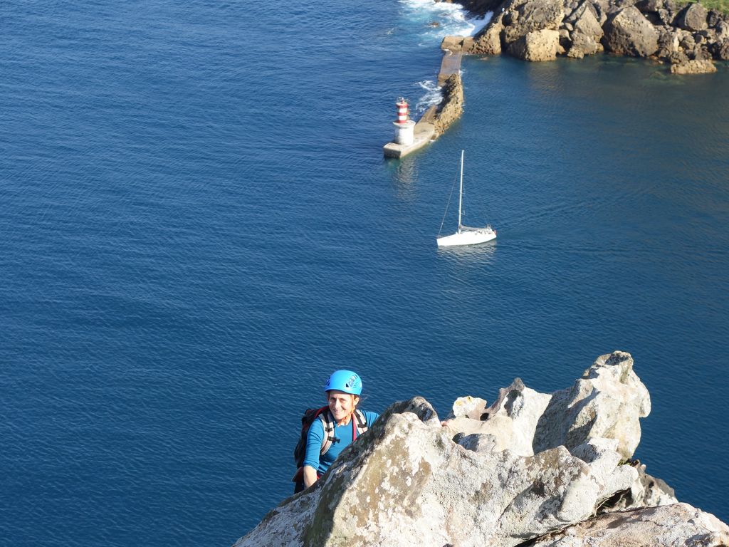 - se renseigner sur l'état de la mer si vous voulez attaquer comme nous par le départ en traversée. Si la mer est trop agiter, il faudra prendre la variante (1longueur en 5b à équiper). Samedi, il n'y avait pas de vent, windguru annoncait une houle d'1m et c'était tranquille.