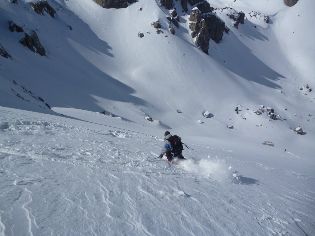 Descente dans des combes ombragées en poudreuse encore séche : régal !