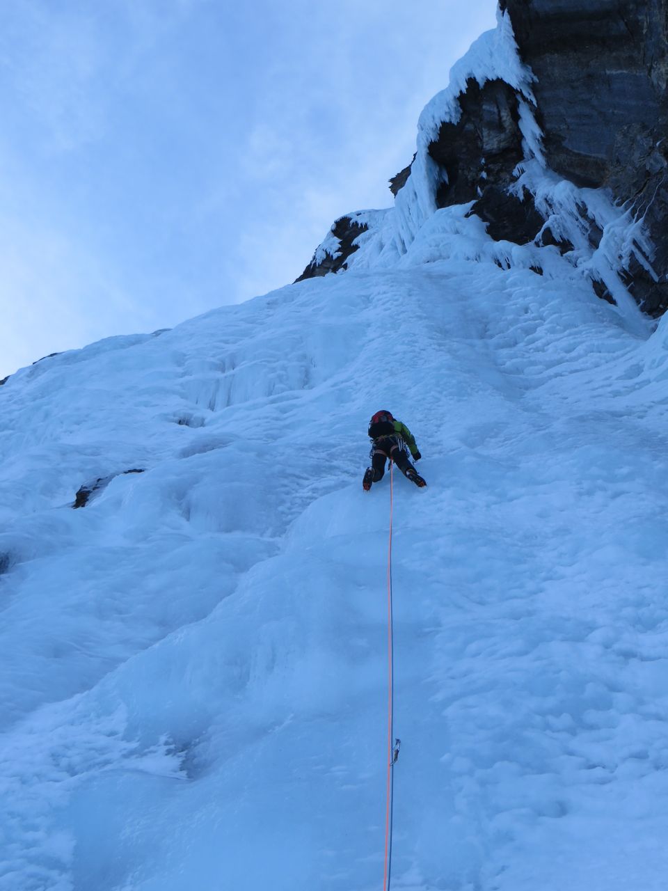 Au final, ça a été une de nos meilleures journées en montagne ! La glace était bien là, en quantité et en qualité (assez souple, ce qui diminuait nettement la difficulté,