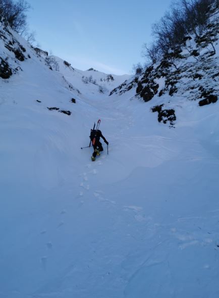 J’avais en vue une variante du couloir « Aiguillette » que j’avais déjà fait aussi l'année dernière, mais plus à droite avec 2 petits ressauts qui passent bien dans ces bonnes conditions , et une sortie de crête plus haute .