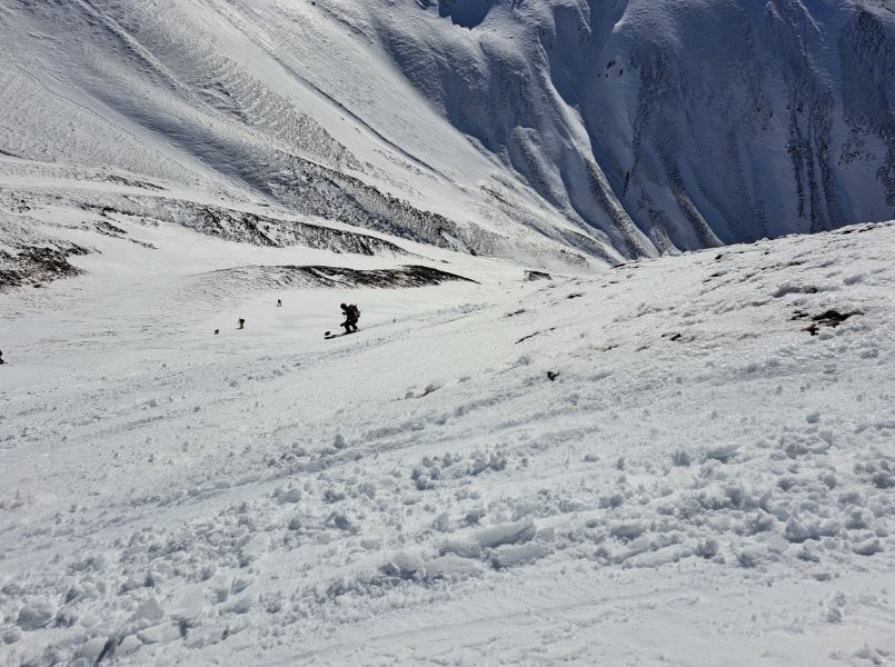 Descente cette fois ci vers la combe côté fontaine salées (ouest) , bien bonne à skier et pas encore trop soupe, encore que..
