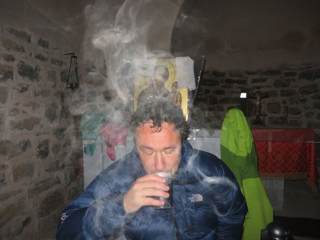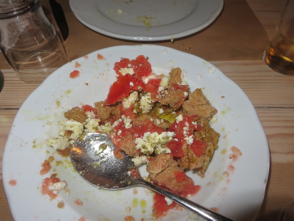 Dès 11h, on se prend des abats d’eau nous obligeant à faire une pause dans une taverne. Ce sera l’occasion de découvrir les spécialités locales ainsi que le vin blanc et le raki. On en repart « Réchauffé » par le feu de cheminée et le Raki :-)